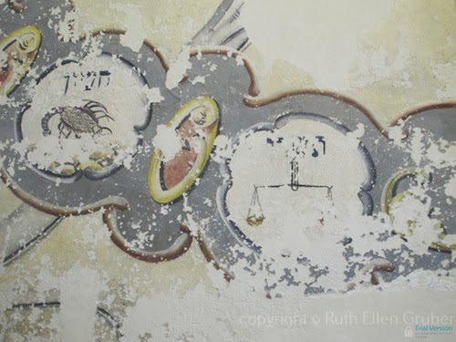 Zodiac on ceiling of disused synagogue in Siret, Romania. Photo © Ruth Ellen Gruber