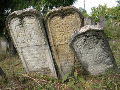 Candlesticks hands in blessing mark women's gravestones in Gura Humorului, Romania. Photo © Ruth Ellen Gruberby Ruth Ellen Gruber