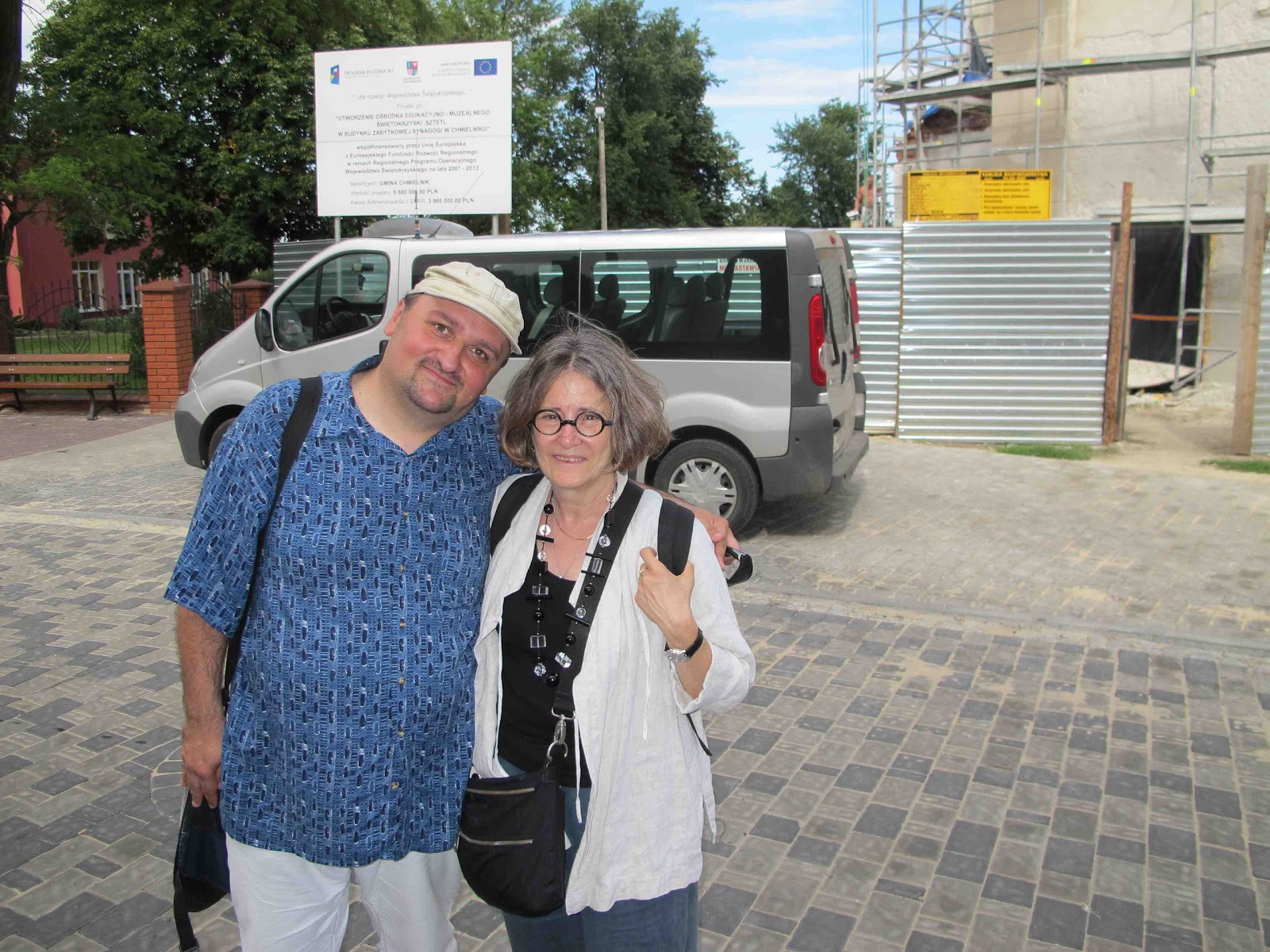 Me and Piotr Krawczyk outside the synagogue under renovation, July 2012.About a dozen years ago, young local activists, in particular Piotr Krawczyk, became interested in the Jewish history of the town -- which Krawczyk noted to me actually meant the history of the town: before the Holocaust, Jews made up about 80 percent of the population, but their memory and the memory of their contribution was long suppressed or forgotten.