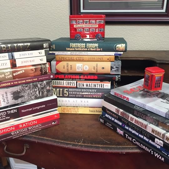 I’ll be returning to Britain to tell the stories of three cousins who escape from the Netherlands to the United Kingdom in World War II—for three very different reasons. These will be exciting and romantic tales of mystery, espionage, and resistance in the midst of World War II, which also highlight issues with contemporary relevance. Of course, I used the new contract as an excuse to buy research books! The spines of these nonfiction books give you a few story clues!