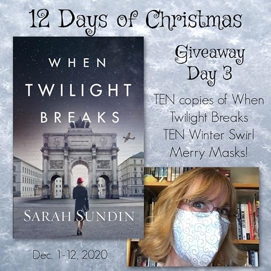 It’s not too late to enter the Rafflecopter giveaway below by following some of your favorite authors on social media and signing up for their newsletters. We draw a new winner every day, from December 1-12, 2020, and on December 12th, we’ll give away a $100 Amazon Gift Card in addition to all the other great prizes! So…you can enter every day – I’m giving away a total of TEN copies of When Twilight Breaks and TEN Merry Masks!