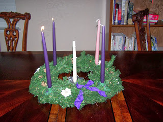 Light the first purple candle (the Prophets' Candle) and the second purple candle (the Bethlehem Candle) as shown. The purple symbolizes penance. Traditionally, the older children light these candles, but use your judgment.