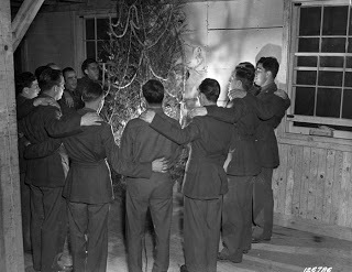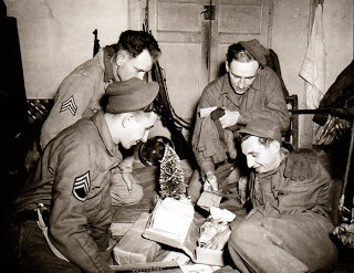 Christmas during World War II found Americans on many fronts. In 1941, only a few weeks after the Pearl Harbor attack, American soldiers were putting up a fighting retreat in the Philippines. 1942 found soldiers fighting on Guadalcanal and New Guinea, and in Tunisia. In 1943, US forces fought on Bougainville, New Britain, New Guinea, and in Italy. Christmas of 1944 found the Allies reeling from the Battle of the Bulge in Belgium and also in France, and also engaged in northern Italy, and back in the Philippines. Throughout the war, sailors faced attacks at sea. In addition, many servicemen and women were stationed far from home even if not on the front lines.