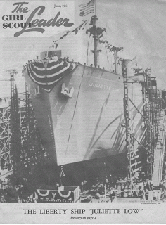 To honor the Girl Scouts, a Liberty ship was named for the organization's founder. The S.S. Juliette Low was launched on May 12, 1944 at the Southeastern Ship Yards in Savannah, Georgia, Juliette Gordon Low's hometown. The ship was christened by Margaret Gordon, the first Girl Scout and Juliette Gordon Low's niece.