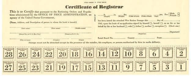 The strict rule that the ration stamp had to be torn from the book in the presence of the retailer was lifted for catalog purchases. If you wanted an extra pair of shoes, you had to fill out a long application at the ration board, listing every pair of footwear you owned, and explaining why another pair was essential for your occupation and why another pair was required to prevent serious hardship.