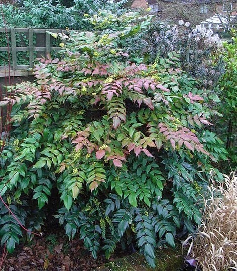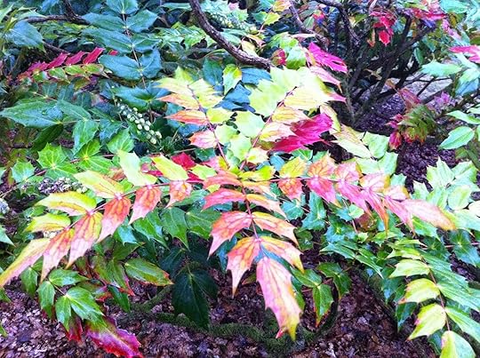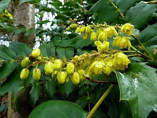 Here's one of my favorite new evergreen plants (mine doesn't look like this yet, but it will! Mine's about the size of the one in the first photo). The Latin name is "Mahonia Japonica," and otherwise known as an Oregon Grape or Oregon Grape-Holly. I love the spiny holly-looking leaves, and the color it will turn in the fall. In the spring, it has yellow flowers followed by purple "grapes." I've already had a branch of yellow flowers! Last but not least, it's the state flower of Oregon!