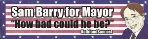 This political advertisement has been paid for by the Sam Barry for Mayor of San Francisco Election Committee, which really needs some money, and maybe a better writer.