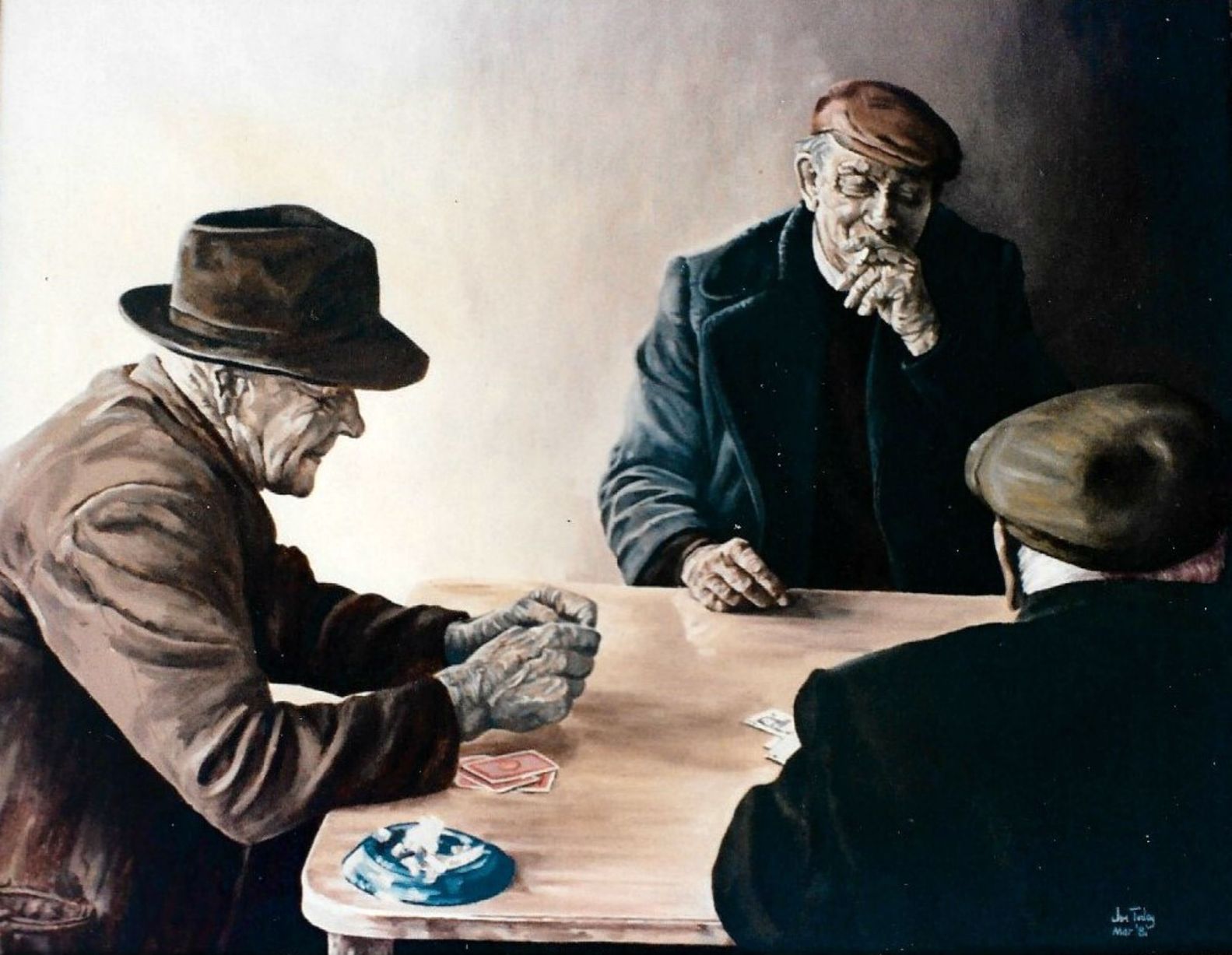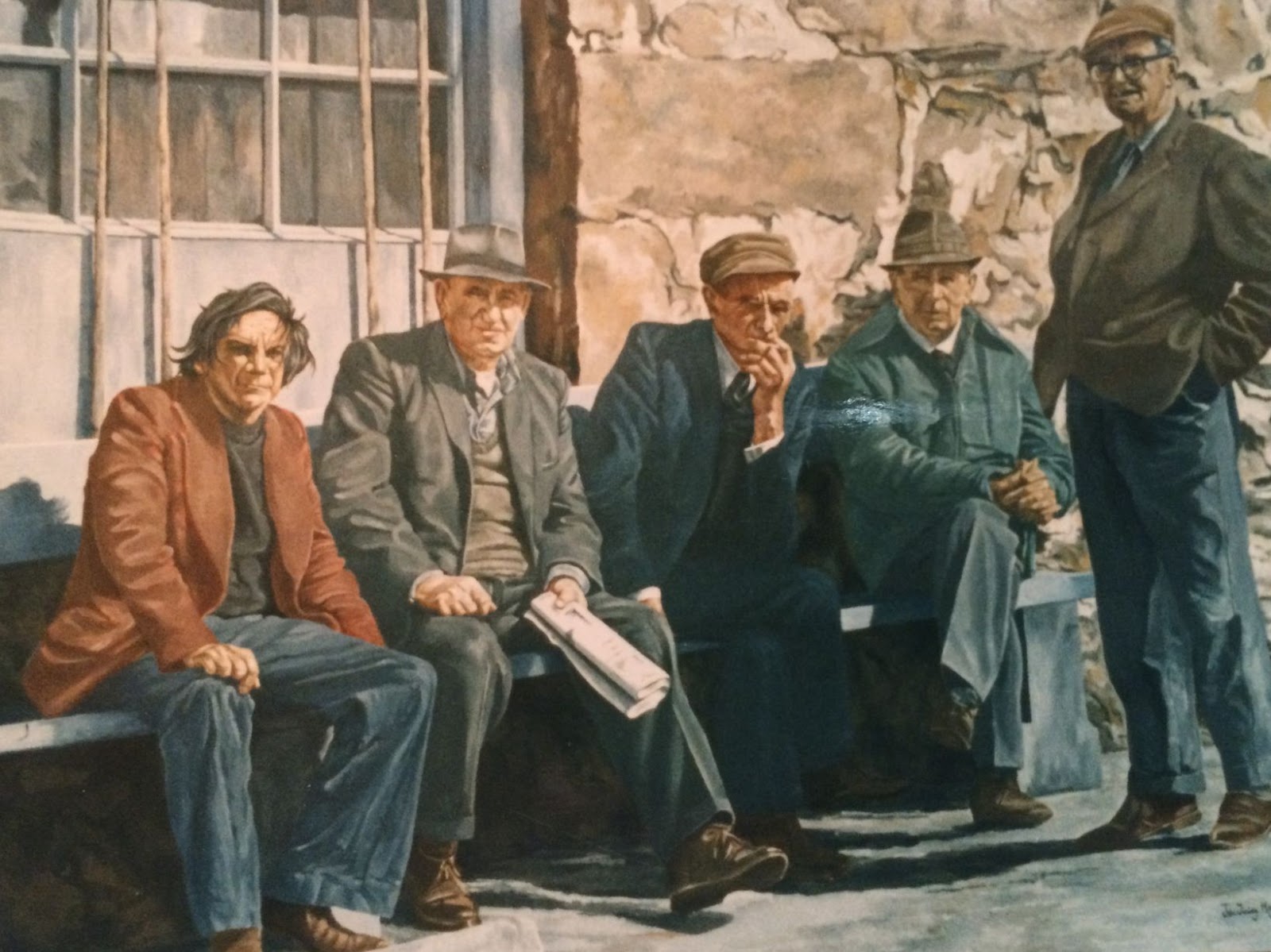 It was a pretty idyllic childhood; a loving family, beautiful countryside, glorious beaches and great friends - many of which are still friends to this day - all conspired to make it so. School too was something I enjoyed, mostly because I was lucky enough to have such inspirational teachers. And among the best of the best were my three art teachers, Arthur Andrews, Phil Howells and Jim Tinley. Arthur died in the early eighties and Phil in the last year or so. But Jim was a bit younger than the others and retired to his beloved Porthleven - Helston's nearby fishing village - and became a well-known local character and painter. I last saw him in 2011 when we arranged to meet up for a drink and a catch up. He was, always, a wealth of anecdotes and dry humour and delighted in hearing what my contemporaries and I had got up to since our previous catch up. I, in turn, loved to see his latest work in progress. He was a very good painter and was brilliant at capturing the people who populated his beloved village.
