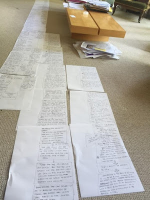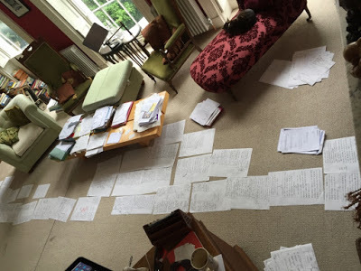 Generally, they fall into two camps: Plotters and Pantsers. Plotters get everything sorted out before they write a word - the research, timeline, characters. One of my best mates is a plotter. That's why his office floor looks like this: