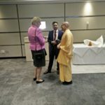 In response to his story, Jayne Anne explained, “My husband comes from a very poor background. He grew up in Kenya, and as a Hindu has always lived a life that the Swami talks about. Not as deeply and broadly, but nevertheless, it’s been useful for me because what it has meant in my career is that these values are beyond possessions or the typical tangible pillar of success. The values the Swami represents have meant that I can do my job with integrity.” She said, after Radhanath Swami gifted her two of his books, that a key message she took away with her was “we all have a duty to make a difference, and we are all connected.”