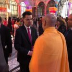 Radhanath Swami spoke alongside Philip May, the Prime Ministers husband and the Rt Hon James Brokenshire MP, Secretary of State for Housing, Communities and Local Government. The event was scheduled to happen at Number 10, Downing Street, the Prime Minister’s official residence, but was relocated to the prestigious Durbur Hall of the Foriegn Office as Theresa May was caught up in discussions around the U.K. leaving the European Union.