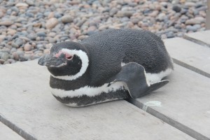 Penguin chillaxin’ on the wooden path that snakes through Punta Tombo. Signs along the path warned us to cede the right of way to the “pinguinos.”