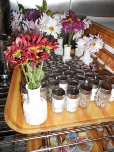 Flowers and shakers waiting to be used for stateroom service. Yes, the flowers are real.