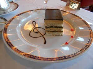 The finished product (opera cake). I still find it hard to imagne how the staff made every single dish look like this one.