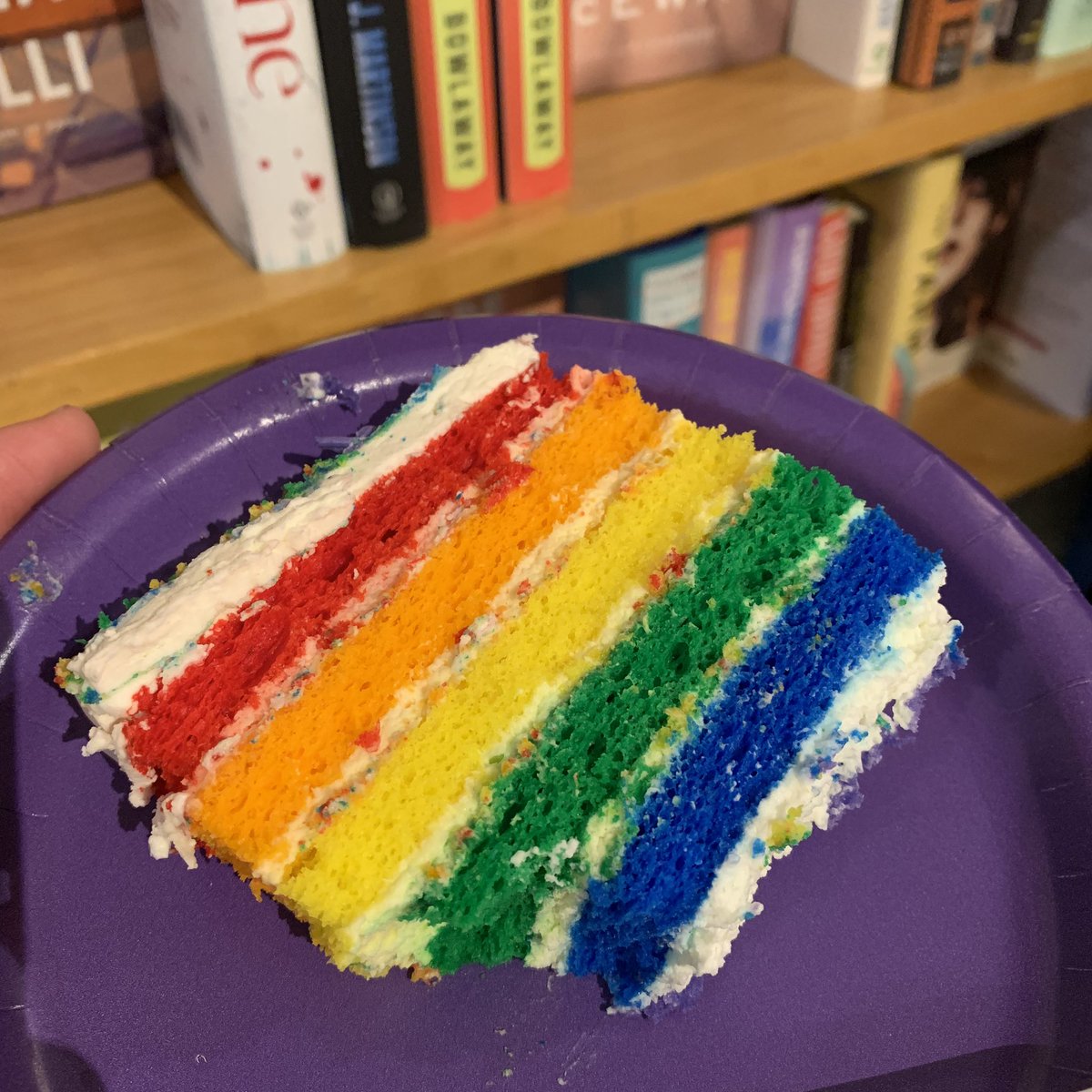 My mouth was dry after reading, but I still managed to eat a piece of Rainbow Cake.