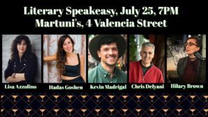 This one comes courtesy of Left Coast Writers and Book Passage bookstore in San Francisco’s Ferry Building, where I’ll be reading on Monday, July 8, at 6 p.m. I’ve never gone solo before, and I’m nervous and excited about it. If you happen to live in San Francisco and can make it, I’d love to meet you.