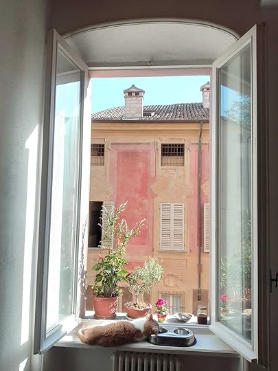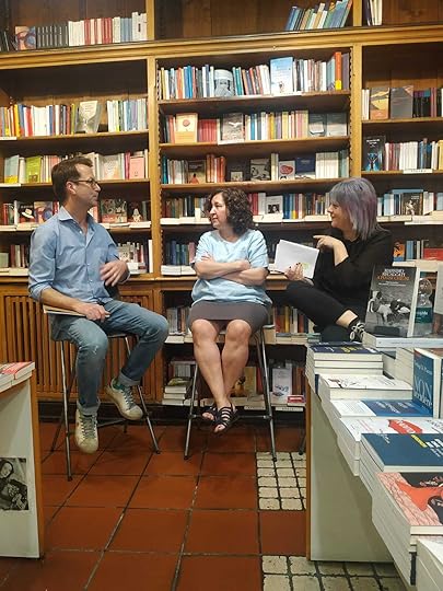 First of all, it was a lot of fun. Helene is a wonderful, easy-going Jersey girl with a deep commitment for "getting the story." She speaks a little Italian, so I didn't have much to do at first, but pretty soon a bit of interpreting became necessary. As Elisa started to dig into her line of questions, Helene would look at me more and more often for a quick interpretation. Logically enough, her own answers became steadily more intricate. So my role was also to translate her responses to Elisa back into Italian for the Italian audience, which had begun with exactly one elderly fellow from Parma (who was super alert and even compared the book to Mann's "Death in Venice") and ended up as a full house with folks standing at the back of the Fiaccadori bookstore.