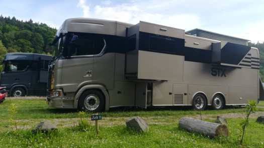 Foto 18: Een reus van een campingcar die bij stilstand nog een eind uitgeschoven kan worden. Als je zoiets moois hebt kruip je natuurlijk niet meer in een tentje.