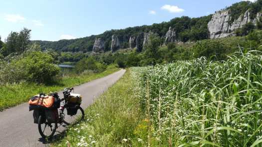 Foto 5: Fietspad langs de Doubs met rotsformaties er langs.