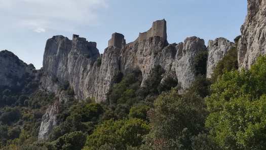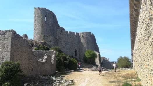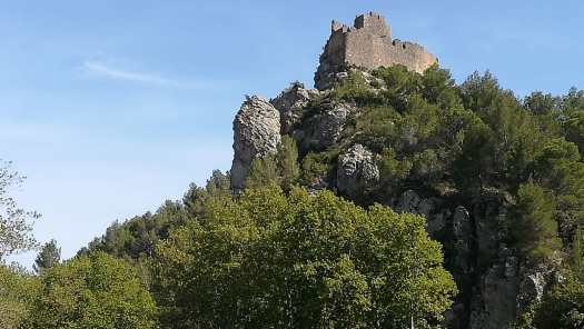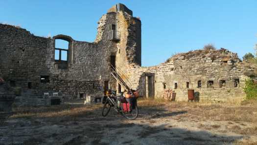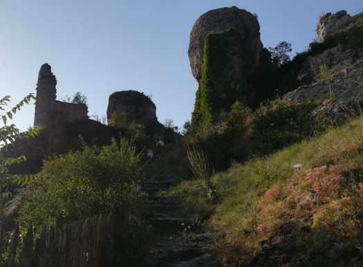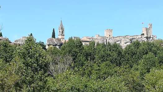 Foto 9: De rots bij de ruïne van het kasteel van Le Caylar.In Le Caylar wordt jaarlijks een fietsreizigersfestival gehouden en toevallig was dat juist aan de gang toen ik er aankwam.