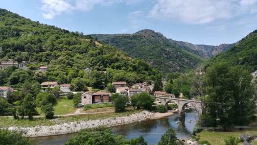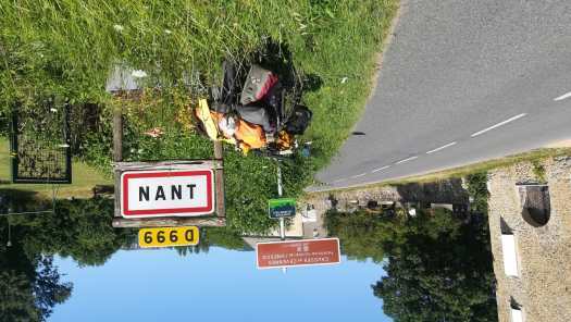 Foto 12: Het doel bereikt: Saint Julien d’Arpaon, veel naam voor weinig. Hoewel… zo’n plekje is natuurlijk veel plezieriger dan een grote stad.Het was ondertussen weer zondag, een week na mijn tocht langs de Gorges de l’Ardeche en weer stond er een mooie etappe op het programma : door de Gorges du Tarn. Het was bovendien Quatorze Juillet, de nationale feestdag, de dag dat de Fransen gedenken dat de Bastille, het gehate symbool van volksonderdrukking, werd bestormd en verwoest. Het was tevens de aanloop tot een nieuwe volksondrukking waarbij duizenden onschuldigen het leven lieten onder de guillotine. Veel reden dus tot feestvieren en met het motorfestijn in de Gorges de l’Ardeche nog vers in mijn geheugen leek het mij beter om deze dag de bochtige weg door de Gorges du Tarn te mijden. In plaats daarvan maakte ik een wandeling naar het schilderachtige dorpje Quezac vlak bij Ispagnac.