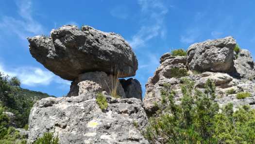 Foto 15: Een tot de verbeelding sprekende paddenstoelvormige rots in de Cirque de Mourèze.