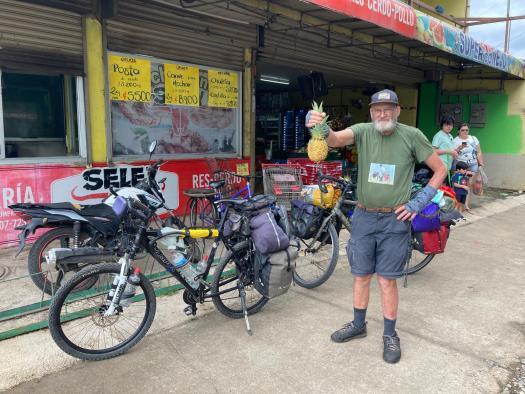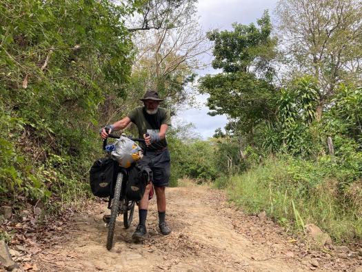 Ten noordoosten van Liberia (de stad en niet het land, want dan zouden we in een ander continent zitten) ligt het nationale park van Rincon de la Vieja. Dat is een grote, erg actieve vulkaan waar je niet op mag, want als de boel plotseling explodeert geeft dat natuurlijk een hoop trammelant. Je mag wel wat rondwandelen lager langs de flanken van de vulkaan en dat is wat ik deed. Eerst fietste in omhoog naar het plaatsje Curubande waar ik mijn spulletjes achter liet in een bungalow, een soort B+B, maar dan zonder breakfast. Vandaar fietste ik, verlost van alle bagage ongeveer 11 km verder omhoog naar de ingang van het park. Om daar binnen te geraken moet je echter 8630 Colon betalen. Dat lijkt veel en dat is het ook, want dat komt overeen et 17,25 euro. Op zich is dat natuurlijk al vervelend voor een vulkaan waar je niet eens op mag, maar nog vervelender is dat je dat niet cash kunt betalen bij de parkingang. Dat moet, nu de wereld gezegend is met computers, on-line. En als je niet on-line kunt betalen? Hoe moet dat dan? Gewoon: dan kom je er niet in, of je moet geluk hebben dat André er is. Die kan misschien iets regelen dat je er in komt met een betaalpas.