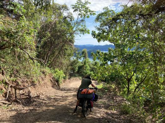 Foto 12: Ruig werk. Te steil omlaag om te fietsen. Dus lopen met de remmen ingeknepen.