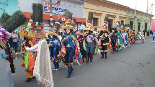 Foto 18: Hier kwamen de dansers netjes langs me heen zodat ik kon fotograferen zonder andere toeschouwers voor mijn lens te krijgen. Was dat omdat ik de enige gringo in deze mensenmenigte was? Ik zag in deze stad inderdaad geen enkele andere toerist.