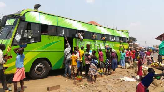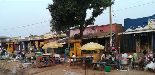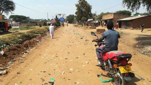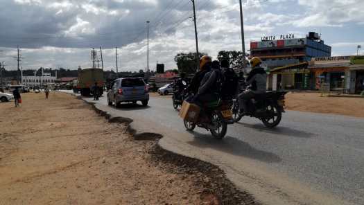 Foto 3: In het plaatsje Kapenguria, enkele kilometers van klimwerk verderop, was het verkeer erg druk. Interessant om te zien hoe de zijkanten van de weg zijn weggespoeld in de regentijd.