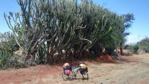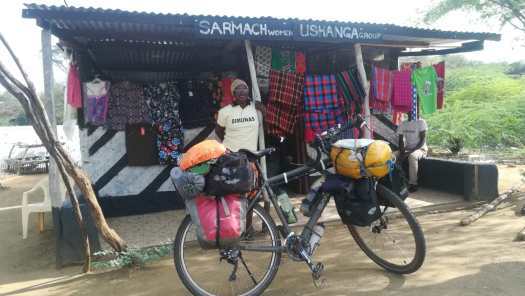 Van Kitale, waar ik de vorige keer tussen de ananassen ben blijven steken, vervolgde ik mijn reis in noordelijke richting. Niet ver buiten Kitale kwam ik langs het Tinga Tealand Hotel, dat geen hotel is, maar een eethuisje. In deze contreien wordt zo’n eetgelegenheid ‘Hotel’ genoemd, maar overnachten kun je er niet. Voor mij was het bijzondere van dit ‘hotel’ dat de eigenaar een naamgenoot is van een goede vriend van mij, die ik in 1975 ben tegengekomen op de Col d’Aubisque in de Pyreneeën. Hij reisde op een bromfiets heel Frankrijk af en ik deed dat uiteraard op mijn fiets. We wisselden adressen uit en hebben sindsdien altijd contact gehouden.