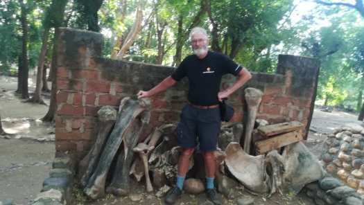 Foto 12: Alsjeblieft : een nog hoger termietenkasteel. Reken het nu zelf maar uit.Terug bij het Field Studies Center zag ik een paar grote botten tegen een muurtje staan.