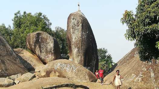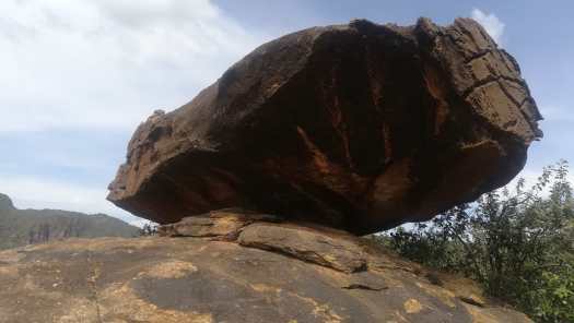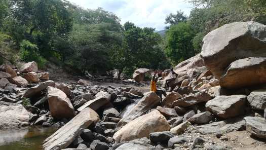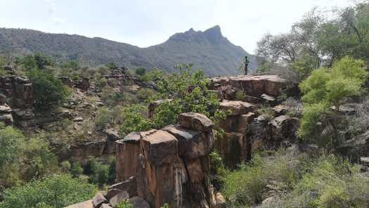 Foto 7: Wel zag ik tijdens mijn verkenningstocht nog een aardig rotsblok, dat ik niet kon laten liggen, althans fotografisch beschouwd. De dag na deze gedeeltelijk gelukte excursie maakte ik onder leiding van Benson, een jongen uit het dorp, een wandeling van een paar uur naar een kleinere kloof, waar ik wel mocht fotograferen.