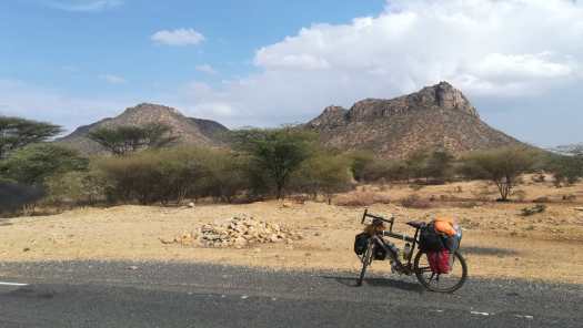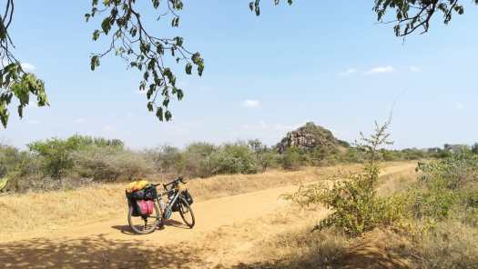 Foto 7: Forse termietenheuvels. Geen vijanden van de banden en de fiets, maar je moet er niet tegenaan rijden want ze zijn zo hard als beton.