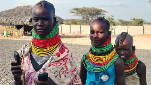 Foto 16: Drie Turkanazusjes. Dat de tijd daar niet stil heeft gestaan is te zien aan de twee mobiele telefoons.