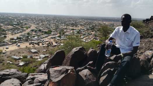 Foto 23: Joseph op de vulkanische heuvel met op de achtergrond en in de diepte een deel van Lodwar.