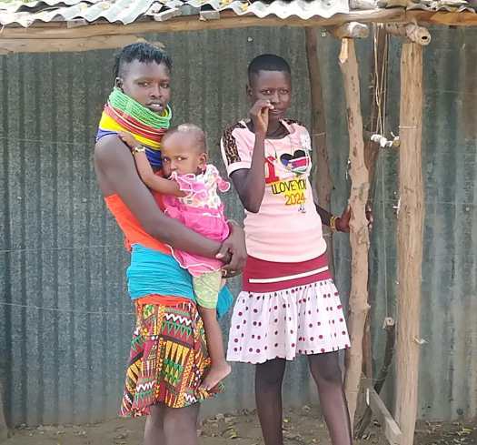 Foto 27: Een traditionele en een moderne Turkana vrouw. Van Lodwar nam ik de route in zuidwestelijke richting naar Moroto in Oeganda. Dat was een lastig traject dat mij weer deed denken aan de goede oude tijd zonder asfalt en met zandige droge rivierbeddingen, enorm stenige gravelwegen en hellingen van 15 tot 20%.