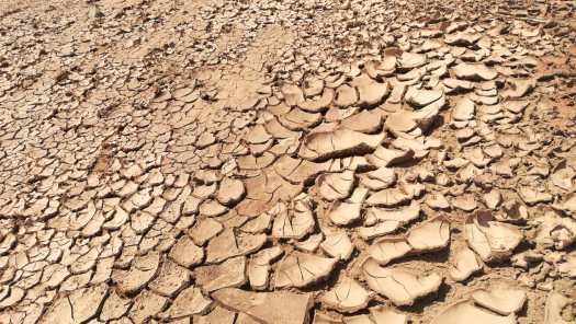 Foto 5: Opgedroogde modder in de rivierbedding. Je zou het zo als een kunstwerk aan de muur kunnen hangen.
