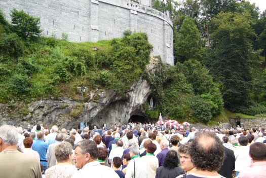 Foto 7: De grot waarin Maria in 1858 voor Bernadette verscheen. Als je die grot wilt bezoeken, moet je, zoals uit de foto blijkt, geduld hebben.