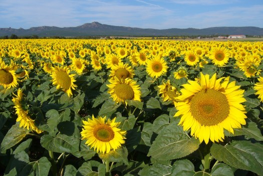 Foto 11: Zonnebloemen die allemaal naar mij kijken.