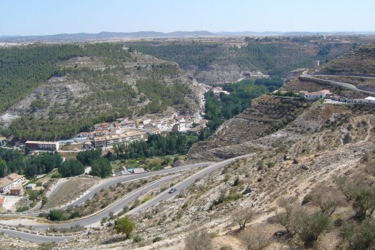 Foto 16: Afdaling vanaf een plateau naar het plaatsje Alcala del Jucar.