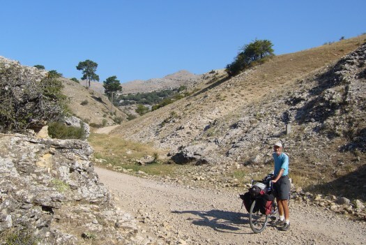 Foto 9: Ik werd op dit traject weinig gehinderd door verkeer. Om precies te zijn: er was helemaal geen verkeer, afgezien van wat geiten en een man op een verroeste fiets.