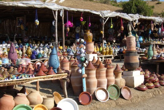 Foto 31: Souvenirs langs de weg van Tetouan naar Chefchaouen. We zijn nu in Marokko aangekomen.