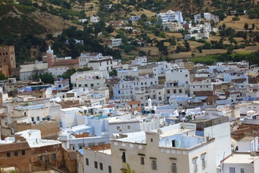 Foto 34: We waren gebleven in Chefchaouen. Hier een uitzicht op dit Noord-Marokkanse stadje.