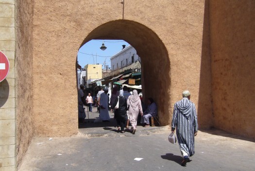 Foto 35: En hier zijn we meteen al een heel eind verder: Een van de stadspoorten van Rabat, de hoofdstad van Marokko.