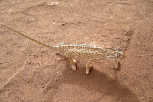 Foto 38: Een kameleon stak de gravelweg over.