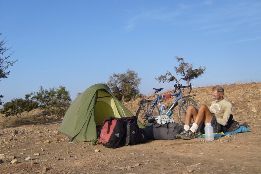 Foto 2: En hier zijn we niet op de Serengettivlakte waar er zomaar een olifant op je af kan komen snellen, maar op het Doldersummerveld, 5 km bij mijn huis vandaan. Een proefrit met alle bagage. Alles was in orde en ikzelf ook min of meer, dus ik kon van start. Op dag twee en drie fietste Jan Leydens, een goede vriend, met me mee. Op weg naar de Duitse grens staken we de weg van Oldenzaal naar Denekamp over. Plotseling schoot me te binnen dat daar vlakbij de historische ontmoeting had plaatsgevonden tussen Gérard Monnink en Toon Damhuis. Dat was op 19 Augustus 1936. Gérard was werkloos en had een lumineus idee: op de fiets naar Palestina, wat vooral in die tijd heel wat anders was dan bijvoorbeeld naar de Veluwe. Dat hele verhaal is te lezen in het boek ‘Met fiets en tent naar de Orient’, dat Gerard enkele jaren na die tocht schreef. Misschien is het boek nog ergens in een kringloopwinkel of antikwafiaat te vinden. Een kostelijk boek dus doe uw best met zoeken. Misschien lukt het ook wel op internet.