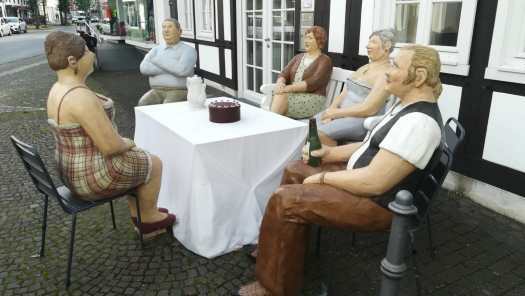 Op die Europa-stemdag kwam ik ’s morgens door het stadje Wiedenbrűck. Daar zag ik langs de invalsweg een verzameling levensgrote betonnen beelden van mensen.