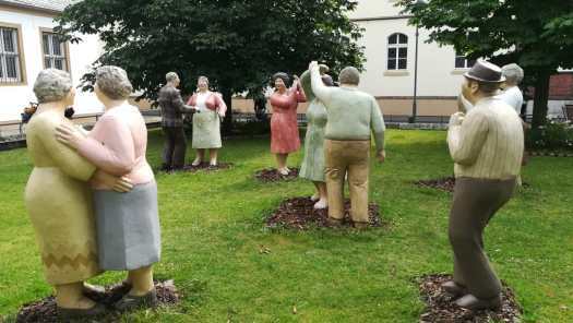 In het centrum zag ik vijf betonnen lieden aan een tafeltje zitten en in een parkje was een hele groep aan het dansen, ook beton.
