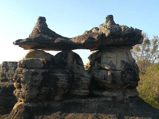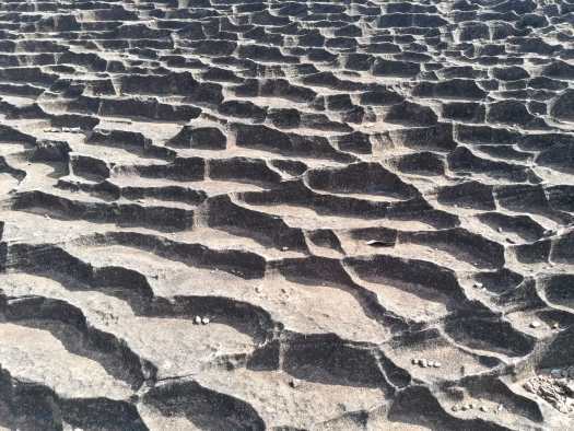 Foto 17: Zwaar geėrodeerde karstbergen. Ze wekken de indruk dat ze om zullen vallen als je er tegen leunt, maar vermoedelijk moet je daar toch wel erg zwaar voor zijn en er heel erg stevig tegenaan leunen. Misschien interessant om dat eens te proberen.